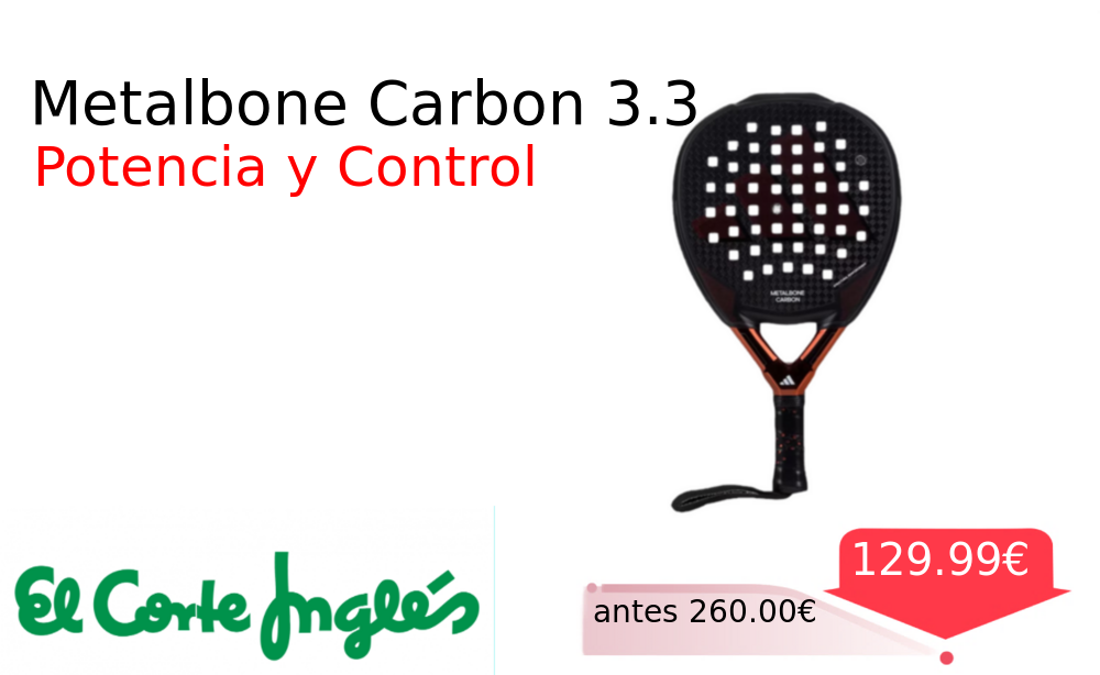 Mitad de precio✂️ Metalbone Carbon 3.3❗️🆕 #Elcorteingles 📛Precio Ya 129.99€❗️ (PVP: +260.00€) ✨Pala de pádel con núcleo de goma EVA y marco de carbono puro Ofrece un equilibrio perfecto entre control y potencia para jugadores. cholloya.com/ADIDAS_METALBON
