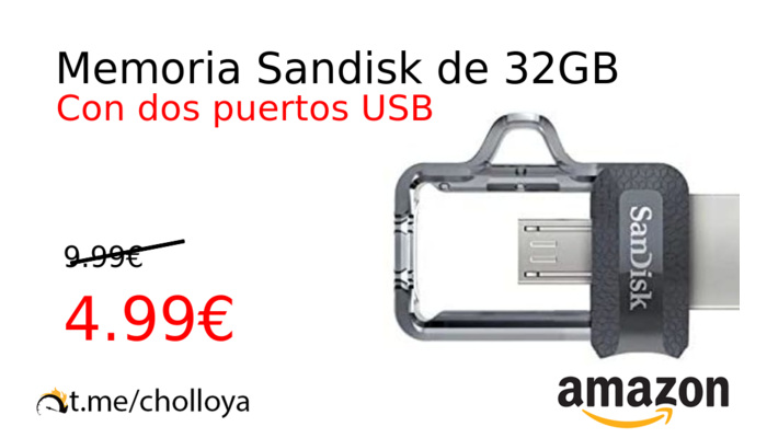 ✂️Mitad de precio✂️ Memoria Sandisk de 32GB❗️? #Amazon ?? ?Precio Ya 7.09€❗️? (PVP: +13.99€) ✨Llévate un Pendrive Sandisk con capacidad de conectarlo a tu móvil o tablet y a tu ordenador a un precio increíble. 32GB de almacenamiento al mejor precio cholloya.com/TGXQDB ✨ cholloya @cholloya