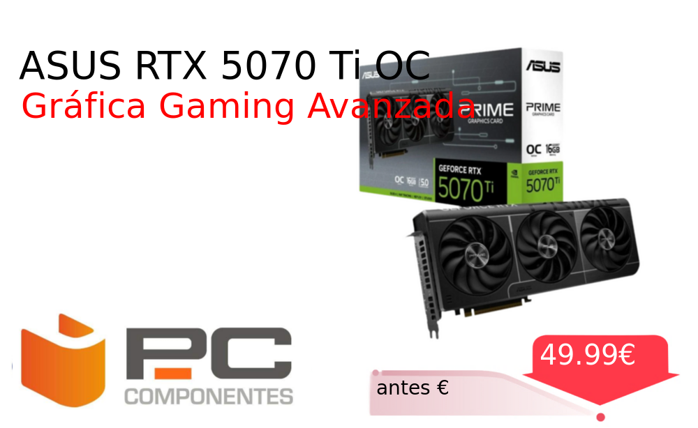 Buen Precio✨ ASUS RTX 5070 Ti OC❗️🆕 #PcComponentes 📛Precio Ya 49.99€❗️ (PVP: +€) ✨Potente tarjeta gráfica con 16GB GDDR7 tecnología Reflex 2 y DLSS4 avanzado Rendimiento excepcional para gaming y aplicaciones profesionales con iluminacion RGB personalizable. cholloya.com/ASUS_RTX5070TI_