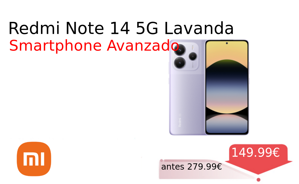 40% 📉 Vaya descuentazo‼‼ Redmi Note 14 5G Lavanda❗️🆕 #Mi 📛Precio Ya 149.99€❗️ (PVP: +279.99€) ✨Smartphone Xiaomi con conectividad 5G y memoria amplia Color violeta lavanda elegante rendimiento fluido y tecnología avanzada para uso diario. cholloya.com/REDMI_NOTE_14_5