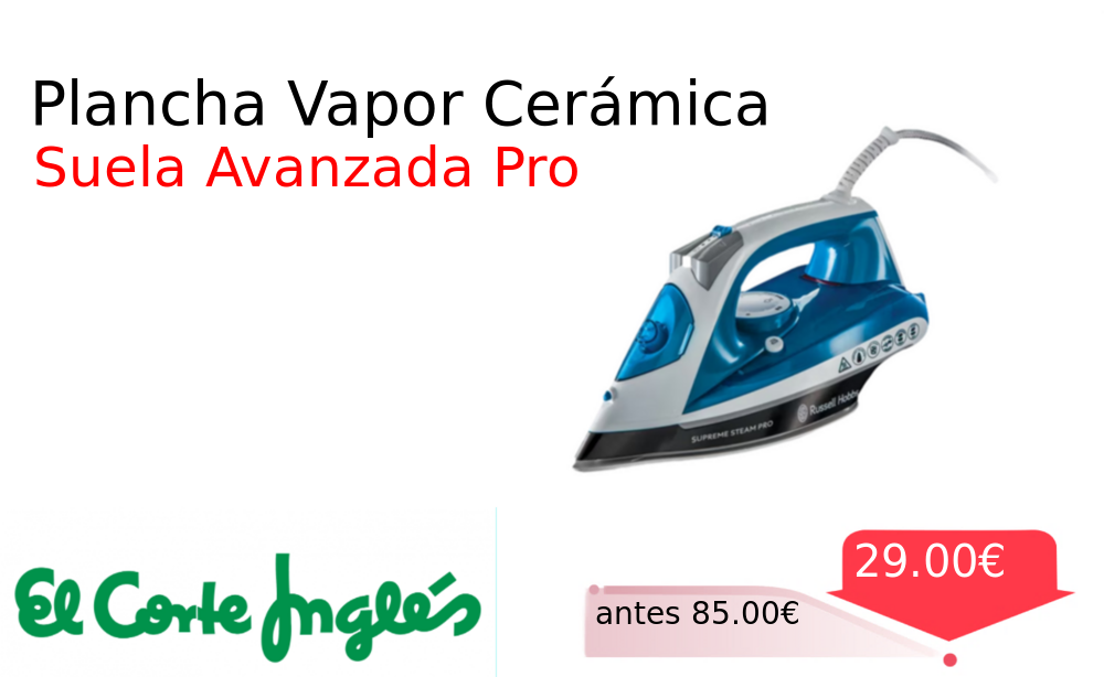 Mitad de precio✂️ Plancha Vapor Cerámica❗️🆕 #Elcorteingles 📛Precio Ya 29.00€❗️ (PVP: +85.00€) ✨Plancha de vapor con suela cerámica para un planchado perfecto Tecnología Supreme Steam Pro que elimina arrugas fácilmente con diseno innovador y funcional. cholloya.com/RUSSELL_SUPREME