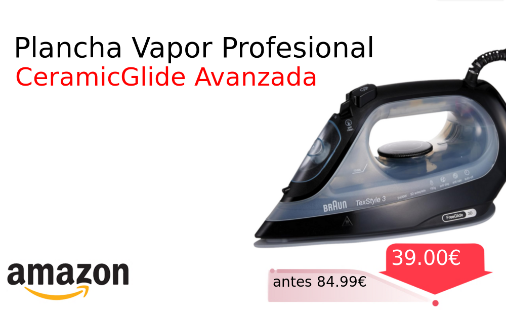 Mitad de precio✂️ Plancha Vapor Profesional❗️🆕 #Amazon 🇪🇸 📛Precio Ya 39.00€❗️ (PVP: +84.99€) ✨Plancha vapor-seco con suela CeramicGlide de alta calidad Rendimiento profesional con vapor continuo y función de secado Ligera y fácil de manejar. cholloya.com/BRAUN_TEXSTYLE_
