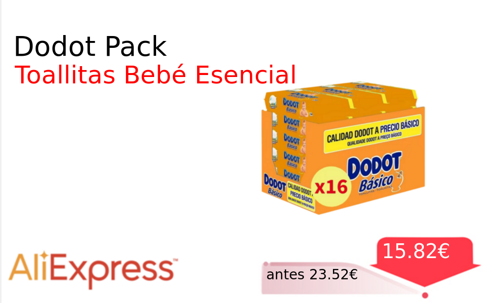 ✨Pack ahorro con 16 paquetes de 54 toallitas Dodot Básico total 864 unidades Suave y resistente para la delicada piel del bebé limpieza eficaz. Cupón adicional: MAES03