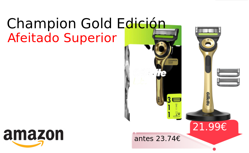 Buen Precio✨ Champion Gold Edición❗️🆕 #Amazon 🇪🇸 📛Precio Ya 21.99€❗️ (PVP: +23.74€) ✨Maquinilla de afeitar con mango ergonómico y barra exfoliante integrada Incluye tres cuchillas lubricadas y soporte magnético para un afeitado preciso y confortable. cholloya.com/GILLETTE_CHAMPI