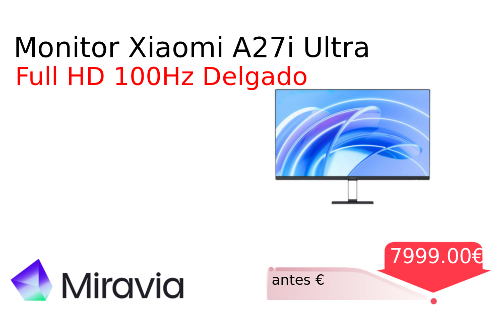 Buen Precio✨ Monitor Xiaomi A27i Ultra❗️🆕 #Miravia 📛Precio Ya 7999.00€❗️ (PVP: +€) ✨Monitor Xiaomi A27i con resolución Full HD y frecuencia de actualización de 100 Hz Diseño ultradelgado de 7 5 mm para una experiencia visual. cholloya.com/XIAOMI_A27I