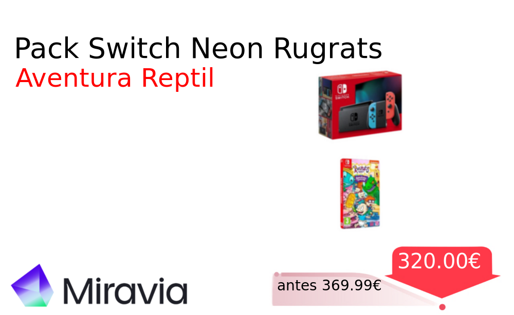 Buen Precio✨ Pack Switch Neon Rugrats❗️🆕 #Miravia 📛Precio Ya 320.00€❗️ (PVP: +369.99€) ✨Consola Nintendo Switch con mandos azul y rojo neon Incluye el divertido juego Rugrats Adventures in Gameland para disfrutar de aventuras únicas. cholloya.com/SWITCH_NEON_RUG