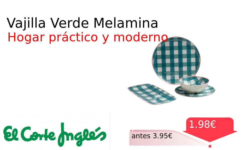 40% 📉 Vaya descuentazo‼‼ Vajilla Verde Melamina❗️🆕 #Elcorteingles 📛Precio Ya 1.98€❗️ (PVP: +3.95€) ✨Vajilla de melamina color verde ideal para uso diario Piezas individuales que combinan diseño y funcionalidad en tu hogar con diseno innovador y funcional. cholloya.com/NICA_VERDE