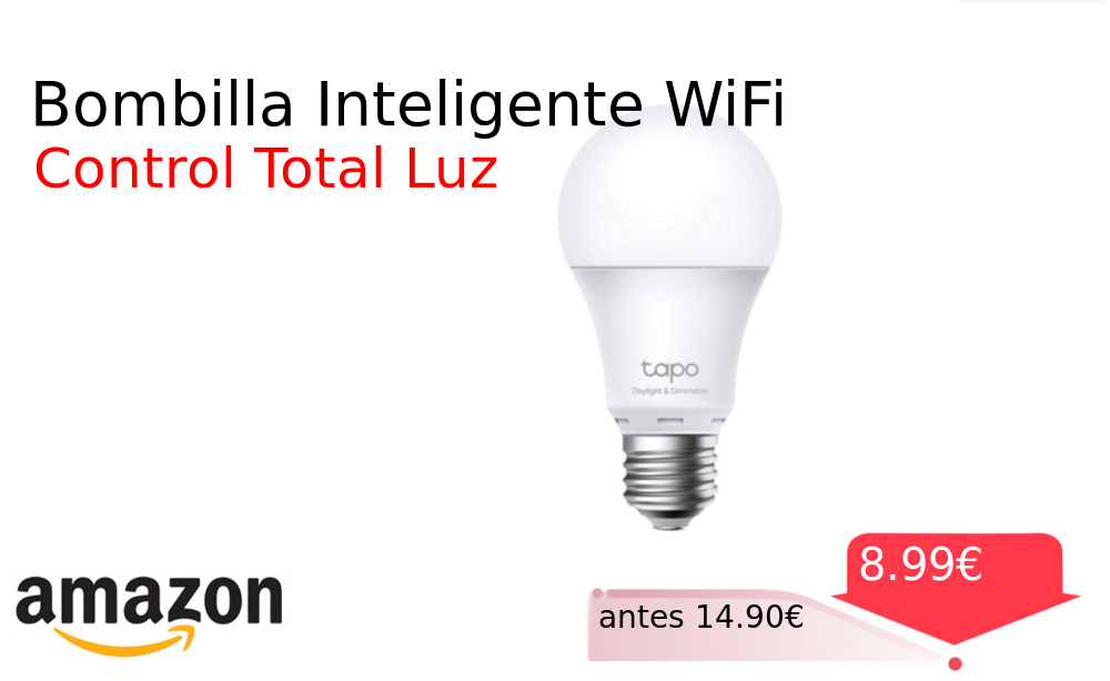 Más de un 30% 🚀 Bombilla Inteligente WiFi❗️🆕 #Amazon 🇪🇸 📛Precio Ya 8.99€❗️ (PVP: +14.90€) ✨Bombilla LED inteligente con conexión WiFi directa regulable y compatible con asistentes de voz Blanco neutro ideal para cualquier ambiente del hogar sin necesidad. cholloya.com/TAPO_L520E