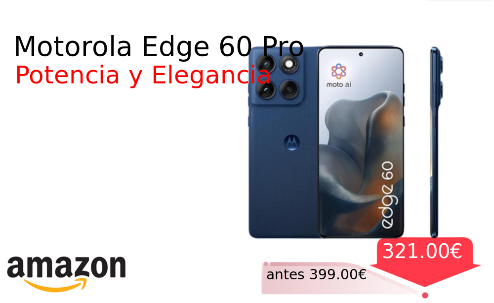 Buen Precio✨ Motorola Edge 60 Pro❗️🆕 #Amazon 🇪🇸 📛Precio Ya 321.00€❗️ (PVP: +399.00€) ✨Smartphone Motorola con pantalla curva Super HD de 6 67 pulgadas Cámara Sony LYTIA 50MP IA integrada resistencia militar y batería de larga duración. cholloya.com/MOTOROLA_EDGE60
