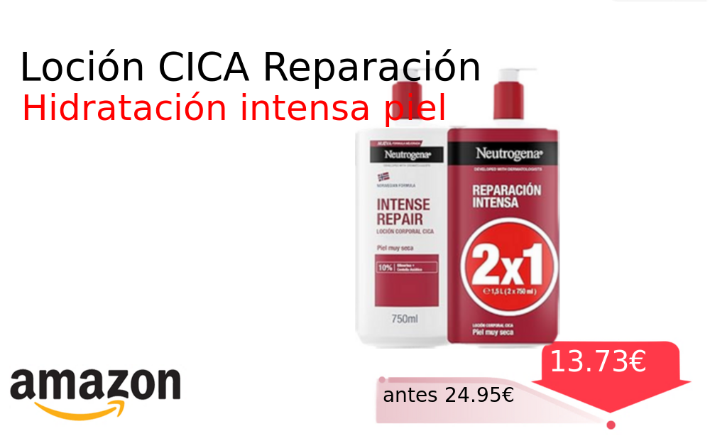 40% 📉 Vaya descuentazo‼‼ Loción CICA Reparación❗️🆕 #Amazon 🇪🇸 📛Precio Ya 13.73€❗️ (PVP: +24.95€) ✨Loción corporal con centella asiática que repara intensamente la piel seca Textura ligera de rápida absorción para una hidratación profunda y duradera. cholloya.com/NEUTROGENA_CICA