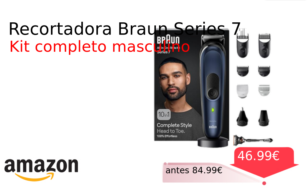 40% 📉 Vaya descuentazo‼‼ Recortadora Braun Series 7❗️🆕 #Amazon 🇪🇸 📛Precio Ya 46.99€❗️ (PVP: +84.99€) ✨Recortadora profesional con precisión alemana para un cuidado masculino completo Incluye accesorios premium que garantizan resultados impecables con materiales resistentes y duraderos. cholloya.com/BRAUN_SERIES7