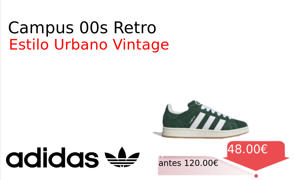 Mitad de precio✂️ Campus 00s Retro❗️🆕 #Adidas 📛Precio Ya 48.00€❗️ (PVP: +120.00€) ✨Zapatilla clásica de Adidas con estilo retro urbano Diseño icónico de los 2000 perfecta para looks casuales Suela de goma y materiales duraderos. cholloya.com/ADIDAS_CAMPUS_0