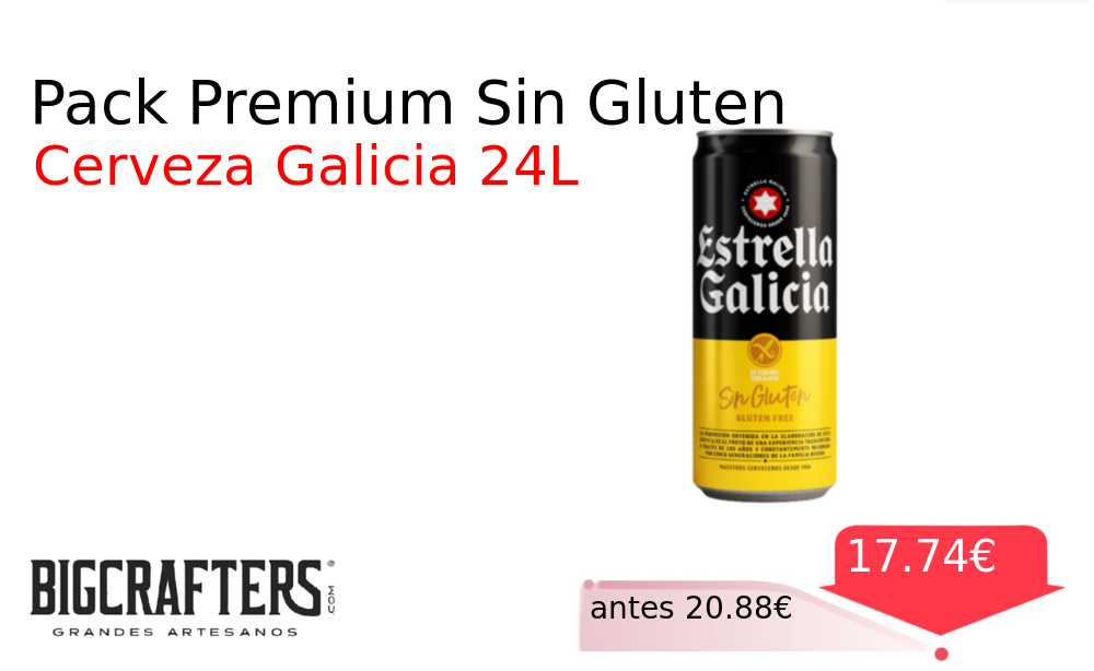 Buen Precio✨ Pack Premium Sin Gluten❗️🆕 #BigCrafters 📛Precio Ya 17.74€❗️ (PVP: +20.88€) ✨Cerveza sin gluten Estrella Galicia en pack de veinticuatro latas refrescantes Disfruta su sabor premium y calidad garantizada en cada sorbo. cholloya.com/BIGCRAFTERS_EST