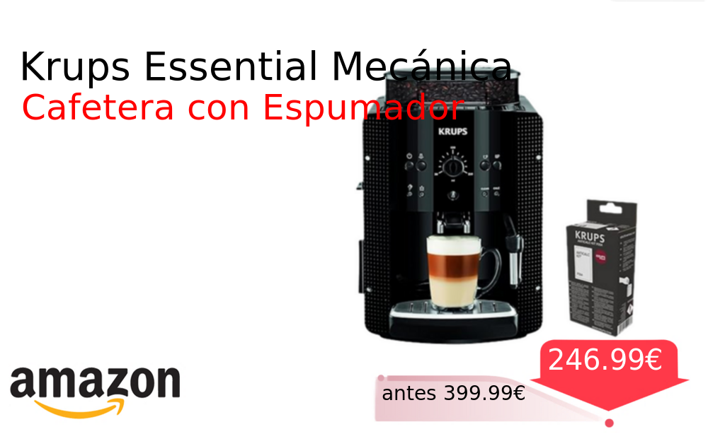 Más de un 30% 🚀 Krups Essential Mecánica❗️🆕 #Amazon 🇪🇸 📛Precio Ya 246.99€❗️ (PVP: +399.99€) ✨Cafetera superautomática con molinillo mecánico y espumador de leche Incluye kit de descalcificación para un mantenimiento sencillo y un café de calidad superior siempre. cholloya.com/KRUPS_EA8108OM