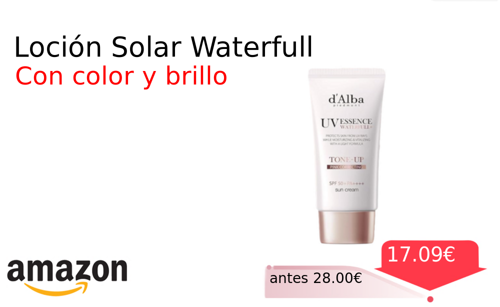 Más de un 30% 🚀 Loción Solar Waterfull❗️🆕 #Amazon 🇪🇸 📛Precio Ya 17.09€❗️ (PVP: +28.00€) ✨Loción solar facial con color SPF50 Hidrata ilumina y protege con filtros veganos Textura ligera y acabado brillante para un cuidado coreano eficaz. cholloya.com/LOCION_SOLAR_WA