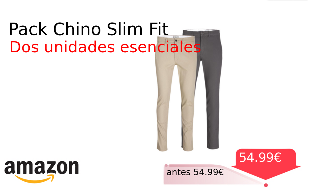Buen Precio✨ Pack Chino Slim Fit❗️🆕 #Amazon 🇪🇸 📛Precio Ya 54.99€❗️ (PVP: +54.99€) ✨Pantalones chinos de corte ajustado en un pack de dos unidades Fabricados con materiales de calidad y un diseño versátil para el día. cholloya.com/JACKJONES_CHINO