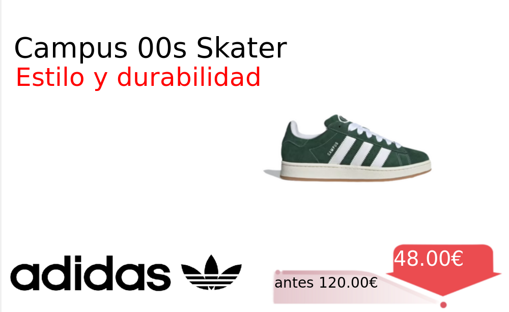 Mitad de precio✂️ Campus 00s Skater❗️🆕 #Adidas 📛Precio Ya 48.00€❗️ (PVP: +120.00€) ✨Zapatilla icónica con estilo skater confeccionada en ante resistente Ofrece una pisada estable y se amolda cómodamente a tu pie para un uso prolongado. cholloya.com/ADIDAS_CAMPUS_0