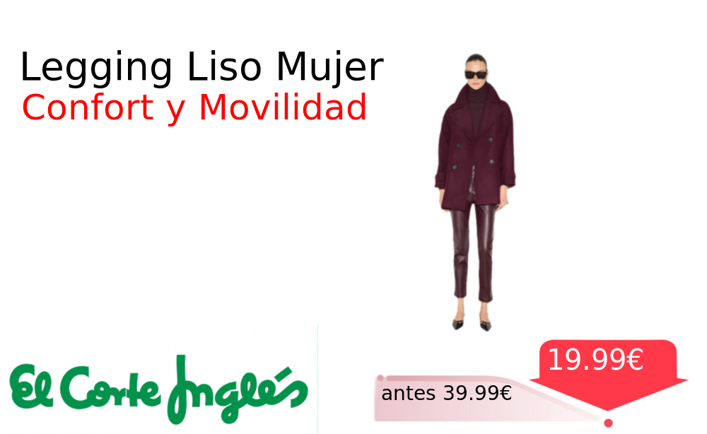 Mitad de precio✂️ Legging Liso Mujer❗️🆕 #Elcorteingles 📛Precio Ya 19.99€❗️ (PVP: +39.99€) ✨Legging de poliéster liso cómodo y versátil para el día a día Su tejido favorece la movilidad y se adapta a cualquier ocasión. cholloya.com/WOMAN_LEGGING_L