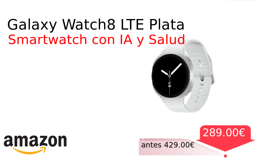 Más de un 30% 🚀 Galaxy Watch8 LTE Plata❗️🆕 #Amazon 🇪🇸 📛Precio Ya 289.00€❗️ (PVP: +429.00€) ✨Smartwatch con conectividad LTE y Galaxy AI Procesador de 3 nm asistente de salud sueño y seguimiento deportivo avanzado Garantía extendida. cholloya.com/GALAXY_WATCH8_L
