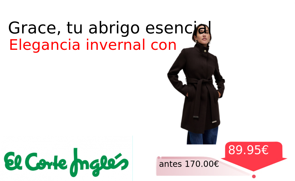 40% 📉 Vaya descuentazo‼‼ Grace, tu abrigo esencial❗️🆕 #Elcorteingles 📛Precio Ya 89.95€❗️ (PVP: +170.00€) ✨Abrigo de paño elegante y atemporal con cinturón Confeccionado en lana de calidad se adapta con elegancia a tu silueta para cualquier ocasión formal. cholloya.com/ABRIGO_GRACE