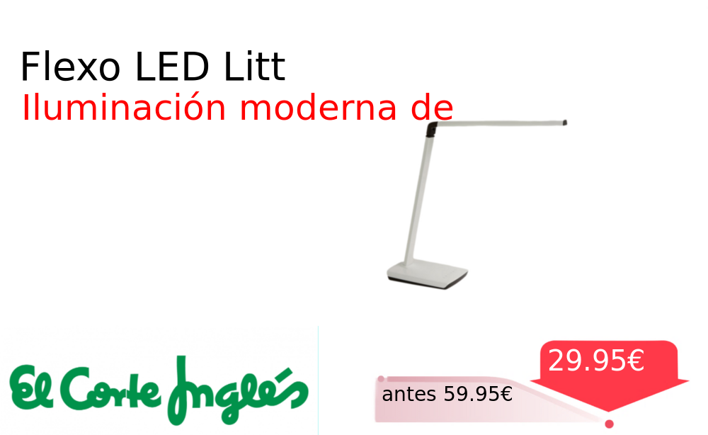Mitad de precio✂️ Flexo LED Litt❗️🆕 #Elcorteingles 📛Precio Ya 29.95€❗️ (PVP: +59.95€) ✨Flexo técnico con luz LED integrada y diseño contemporáneo Sencillo elegante y discreto ideal para espacios actuales Muy completo y de reducido tamaño. cholloya.com/FLEXO_LED_LITT