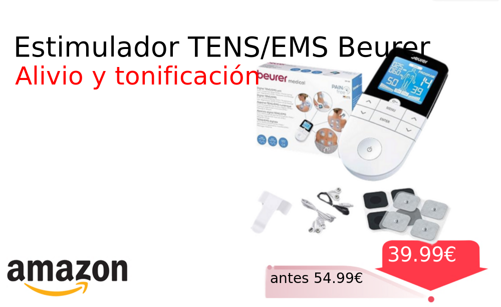 Buen Precio✨ Estimulador TENS/EMS Beurer❗️🆕 #Amazon 🇪🇸 📛Precio Ya 39.99€❗️ (PVP: +54.99€) ✨Dispositivo digital 3 en 1 para aliviar molestias y tonificar músculos Incluye función de masaje y cuatro electrodos para un uso completo y eficaz. cholloya.com/BEURER_EM49