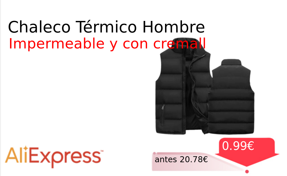 Mitad de precio✂️ Chaleco Térmico Hombre❗️🆕 #AliExpress 📛Precio Ya 0.99€❗️ (PVP: +20.78€) ✨Chaleco acolchado sin mangas con cuello alto Ideal para el frío otoñal e invernal ofrece calidez y protección frente a la humedad Diseño informal. cholloya.com/CHALECO_TERMICO