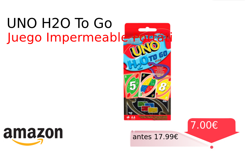 Mitad de precio✂️ UNO H2O To Go❗️🆕 #Amazon 🇪🇸 📛Precio Ya 7.00€❗️ (PVP: +17.99€) ✨Cartas resistentes al agua para jugar en cualquier lugar Ideal para playa piscina o viajes Diversión familiar garantizada para mayores de siete años. cholloya.com/UNO_H2O_TO_GO