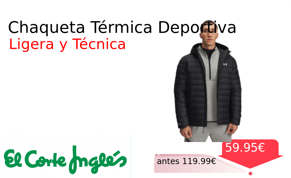 Mitad de precio✂️ Chaqueta Térmica Deportiva❗️🆕 #Elcorteingles 📛Precio Ya 59.95€❗️ (PVP: +119.99€) ✨Chaqueta técnica ligera para hombre ideal para entrenamientos y actividades al aire libre Ofrece comodidad y libertad de movimiento en cualquier condición. cholloya.com/UA_SPORTS_JKT