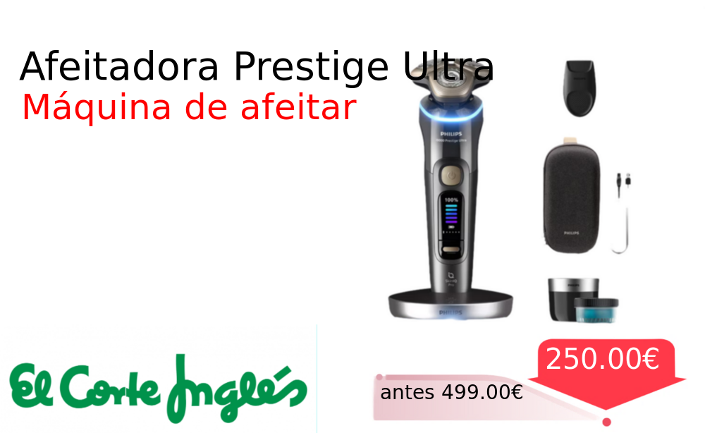 40% 📉 Vaya descuentazo‼‼ Afeitadora Prestige Ultra❗️🆕 #Elcorteingles 📛Precio Ya 250.00€❗️ (PVP: +499.00€) ✨Afeitadora eléctrica de alta gama para hombre diseñada para un afeitado suave y preciso tanto en seco como en mojado Incluye cinco modos personalizables. cholloya.com/PHILIPS_I9000