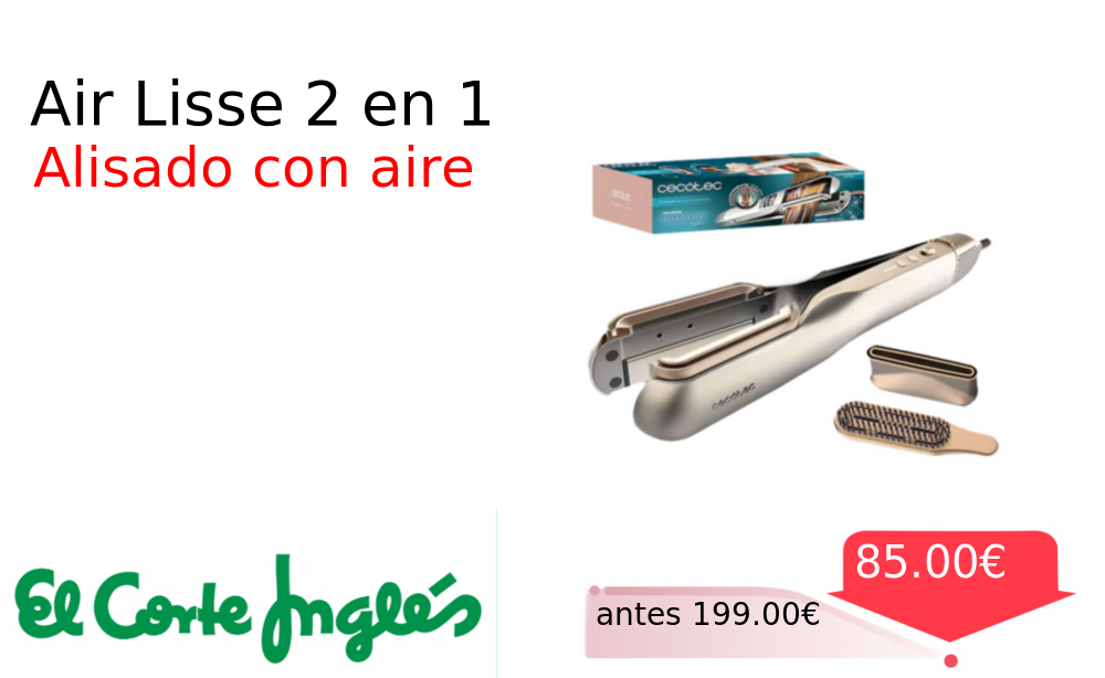 Mitad de precio✂️ Air Lisse 2 en 1❗️🆕 #Elcorteingles 📛Precio Ya 85.00€❗️ (PVP: +199.00€) ✨Plancha de pelo profesional con tecnología de aire para un alisado rápido y sin daños Resultados brillantes y duraderos con un solo paso cuidando. cholloya.com/CECOTEC_AIR_LIS