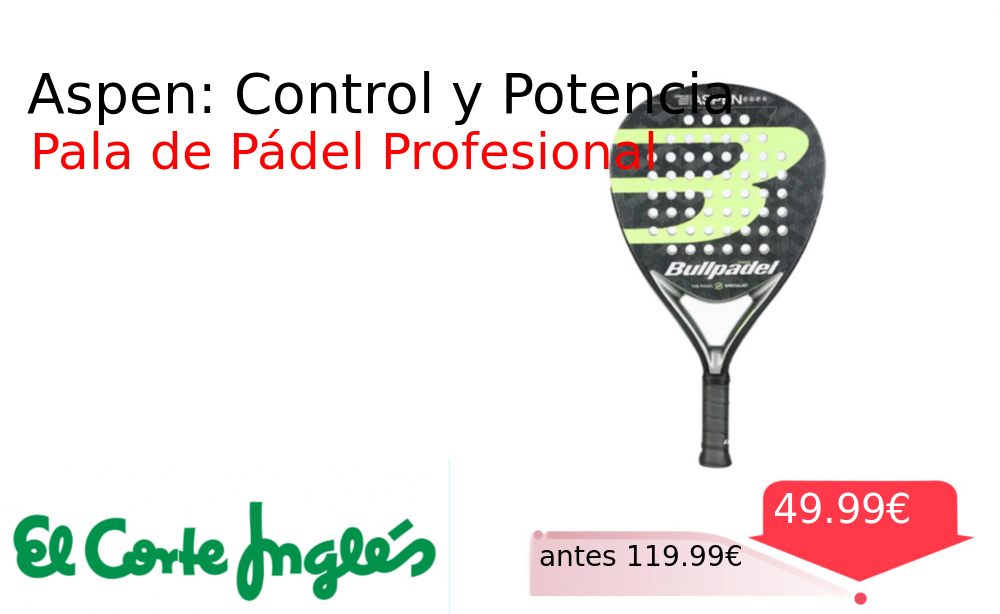 Mitad de precio✂️ Aspen: Control y Potencia❗️🆕 #Elcorteingles 📛Precio Ya 49.99€❗️ (PVP: +119.99€) ✨Pala de pádel con un equilibrio perfecto entre control y potencia Su diseño robusto y superficie rugosa ofrece un golpeo preciso y cómodo. cholloya.com/BULLPADEL_ASPEN