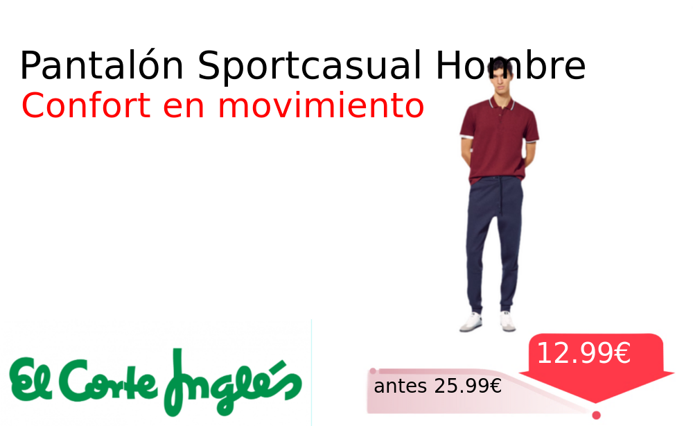 Mitad de precio✂️ Pantalón Sportcasual Hombre❗️🆕 #Elcorteingles 📛Precio Ya 12.99€❗️ (PVP: +25.99€) ✨Pantalón largo para hombre ideal para entrenar o para un look casual Tejido cómodo y transpirable que se adapta a tu movimiento diario. cholloya.com/BOOMERANG_SPORT