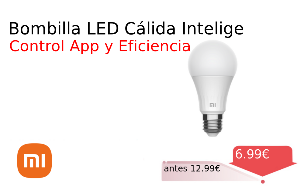 40% 📉 Vaya descuentazo‼‼ Bombilla LED Cálida Intelige❗️🆕 #Mi 📛Precio Ya 6.99€❗️ (PVP: +12.99€) ✨Bombilla LED inteligente de luz cálida blanca Control remoto por aplicación diseño moderno y eficiencia energética máxima para tu hogar conectado. cholloya.com/XIAOMI_LED_CALI