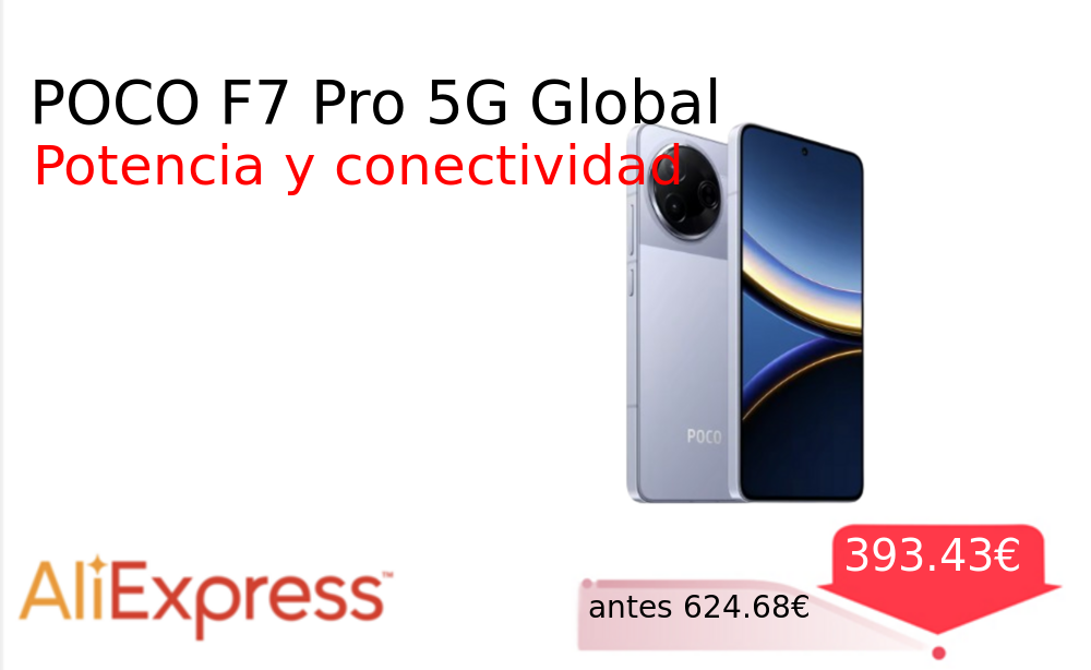 Más de un 30% 🚀 POCO F7 Pro 5G Global❗️🆕 #AliExpress 📛Precio Ya 393.43€❗️ (PVP: +624.68€) ✨Smartphone con conectividad 5G y amplio almacenamiento interno Pantalla fluida rendimiento potente y tecnología NFC integrada Versión global sin cargador incluido en el paquete. cholloya.com/POCO_F7_PRO_5G