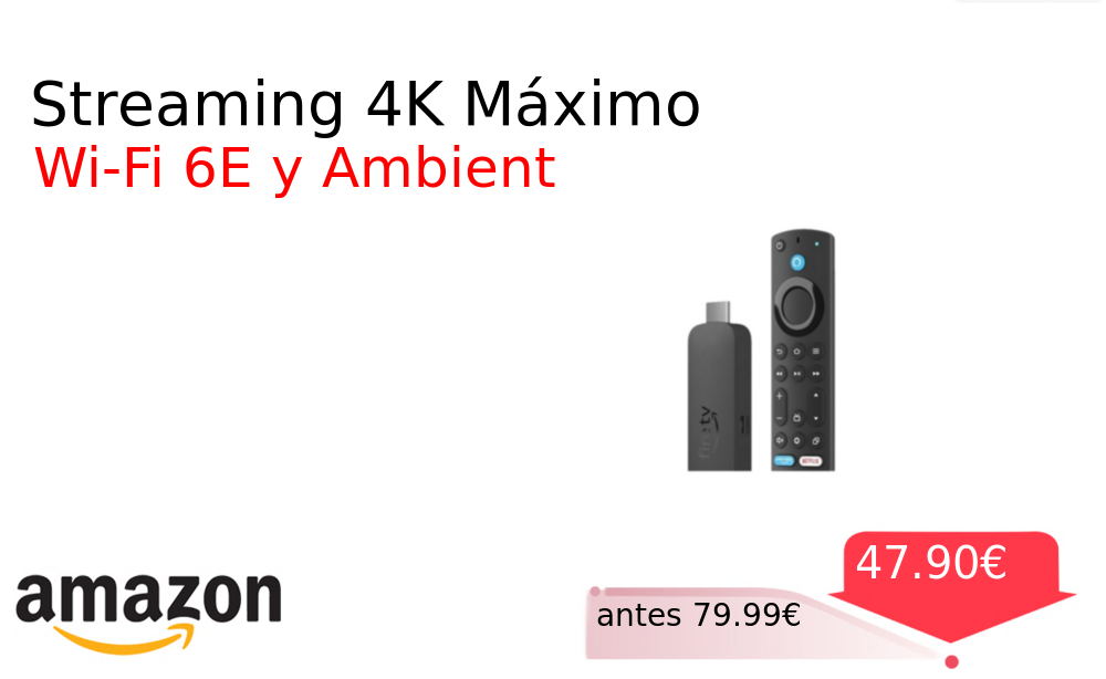 40% 📉 Vaya descuentazo‼‼ Streaming 4K Máximo❗️🆕 #Amazon 🇪🇸 📛Precio Ya 47.90€❗️ (PVP: +79.99€) ✨Dispositivo de streaming con calidad 4K y Wi-Fi 6E para experiencias inmersivas incluye fondo ambiental personalizable y control por voz. cholloya.com/FIRE_TV_4K_MAX
