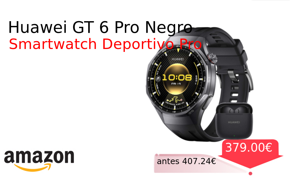 Buen Precio✨ Huawei GT 6 Pro Negro❗️🆕 #Amazon 🇪🇸 📛Precio Ya 379.00€❗️ (PVP: +407.24€) ✨Smartwatch con pantalla AMOLED táctil de 1 47 pulgadas autonomía extendida hasta 21 días Compatible con iOS y Android incluye análisis ECG profesional. cholloya.com/HUAWEI_GT6_PRO