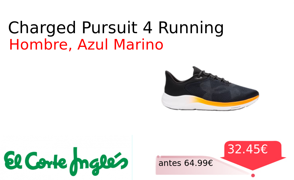 Mitad de precio✂️ Charged Pursuit 4 Running❗️🆕 #Elcorteingles 📛Precio Ya 32.45€❗️ (PVP: +64.99€) ✨Zapatillas de running con amortiguación Charged para máxima comodidad y respuesta Diseño transpirable y ligero para un rendimiento superior en cada entrenamiento. cholloya.com/UA_CHARGED_PURS