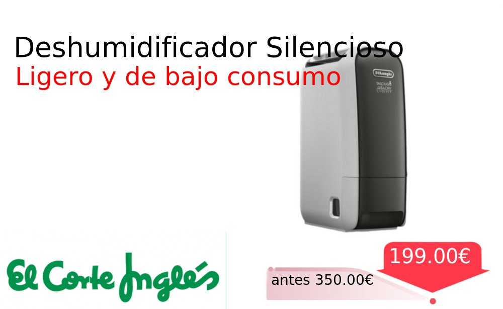 40% 📉 Vaya descuentazo‼‼ Deshumidificador Silencioso❗️🆕 #Elcorteingles 📛Precio Ya 199.00€❗️ (PVP: +350.00€) ✨Deshumidificador eficiente y silencioso para un ambiente más sano Elimina la humedad del aire de forma automática con un consumo energético muy reducido. cholloya.com/DELONGHI_DNS65