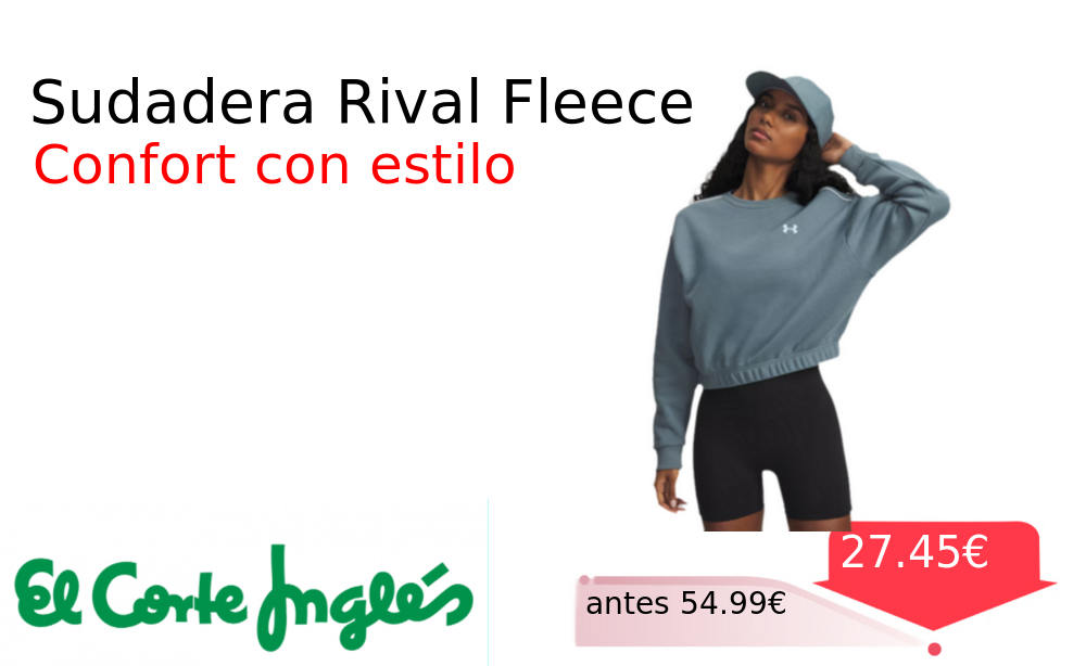 Mitad de precio✂️ Sudadera Rival Fleece❗️🆕 #Elcorteingles 📛Precio Ya 27.45€❗️ (PVP: +54.99€) ✨Sudadera de mujer Under Armour con detalle de ribete en contraste Tejido Fleece suave y cálido ideal para entrenar o el día a día. cholloya.com/UA_RIVAL_FLEECE