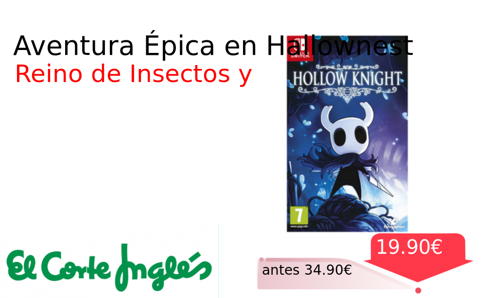 40% 📉 Vaya descuentazo‼‼ Aventura Épica en Hallownest❗️🆕 #Elcorteingles 📛Precio Ya 19.90€❗️ (PVP: +34.90€) ✨Sumérgete en un vasto reino de insectos y héroes Explora cavernas intrincadas domina habilidades y desentraña antiguos misterios en esta aventura aclamada. cholloya.com/HOLLOW_KNIGHT_S