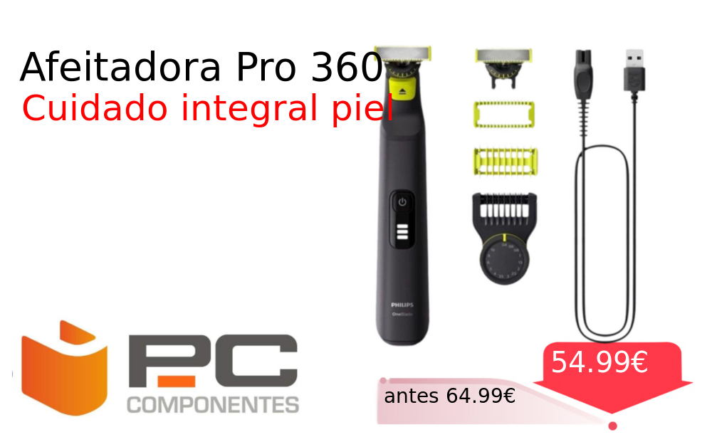 Buen Precio✨ Afeitadora Pro 360❗️🆕 #PcComponentes 📛Precio Ya 54.99€❗️ (PVP: +64.99€) ✨Afeitadora versátil para rostro y cuerpo con tecnología de precisión Diseño ergonómico y duradero para un cuidado completo de la piel. cholloya.com/PHILIPS_ONEBLAD