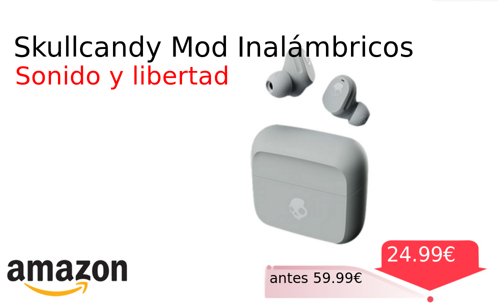 Mitad de precio✂️ Skullcandy Mod Inalámbricos❗️🆕 #Amazon 🇪🇸 📛Precio Ya 24.99€❗️ (PVP: +59.99€) ✨Auriculares in-ear inalámbricos con sonido envolvente y micrófono integrado Autonomía de larga duración y compatibilidad total con dispositivos Bluetooth con cancelacion de ruido activa. cholloya.com/SKULLCANDY_MOD