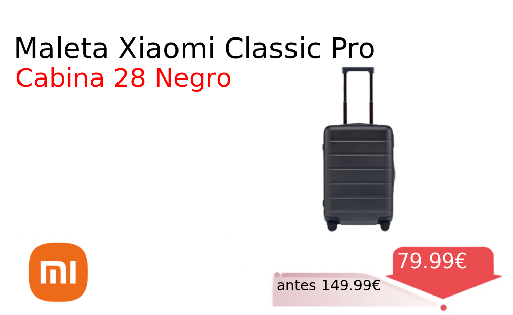 40% 📉 Vaya descuentazo‼‼ Maleta Xiaomi Classic Pro❗️🆕 #Mi 📛Precio Ya 79.99€❗️ (PVP: +149.99€) ✨Maleta de cabina robusta y elegante en color negro Fabricada con materiales duraderos y diseño aerodinámico Garantía oficial del fabricante. cholloya.com/XIAOMI_LUGGAGE_