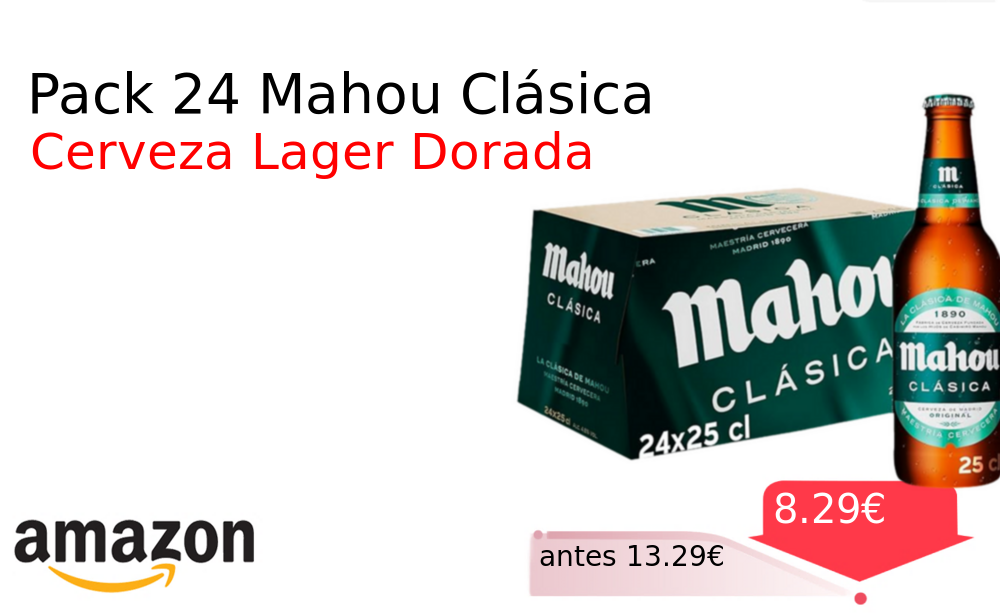 Más de un 30% 🚀 Pack 24 Mahou Clásica❗️🆕 #Amazon 🇪🇸 📛Precio Ya 8.29€❗️ (PVP: +13.29€) ✨Cerveza dorada lager de sabor suave y auténtico Pack de veinticuatro botellas pequeñas ideal para compartir en cualquier ocasión Producto de calidad premium. cholloya.com/MAHOU_CLASICA_2