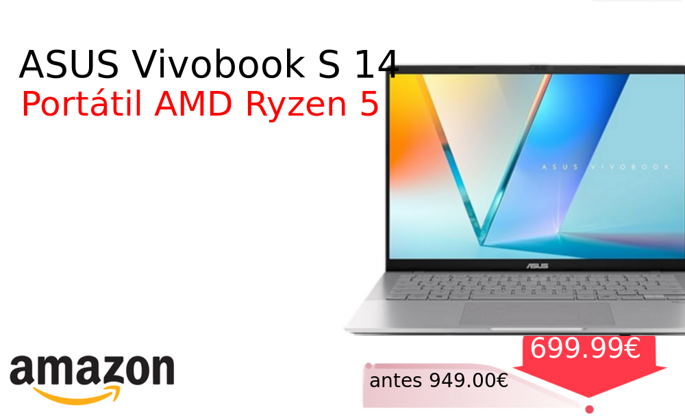 Buen Precio✨ ASUS Vivobook S 14❗️🆕 #Amazon 🇪🇸 📛Precio Ya 699.99€❗️ (PVP: +949.00€) ✨Portátil ultraligero con pantalla WUXGA de 14 pulgadas Rendimiento fluido gracias a su procesador AMD Ryzen y 16 GB de RAM Almacenamiento SSD. cholloya.com/VIVOBOOK_S14_RY