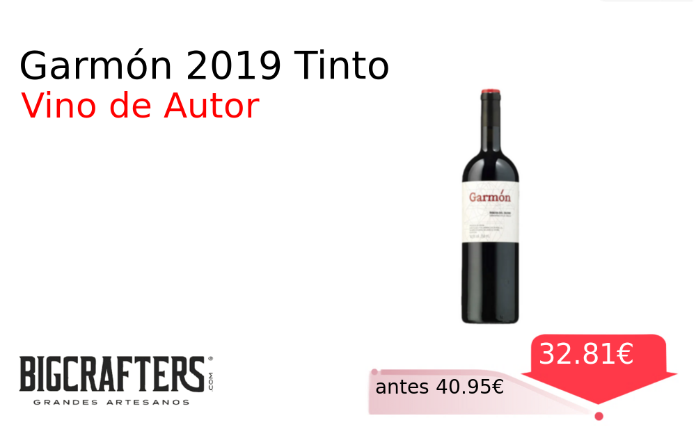 Buen Precio✨ Garmón 2019 Tinto❗️🆕 #BigCrafters 📛Precio Ya 32.81€❗️ (PVP: +40.95€) ✨Vino tinto con carácter elaboración cuidada para una experiencia sensorial única Aromas complejos y un final persistente y elegante con diseno innovador y funcional. cholloya.com/BIGCRAFTERS_GAR