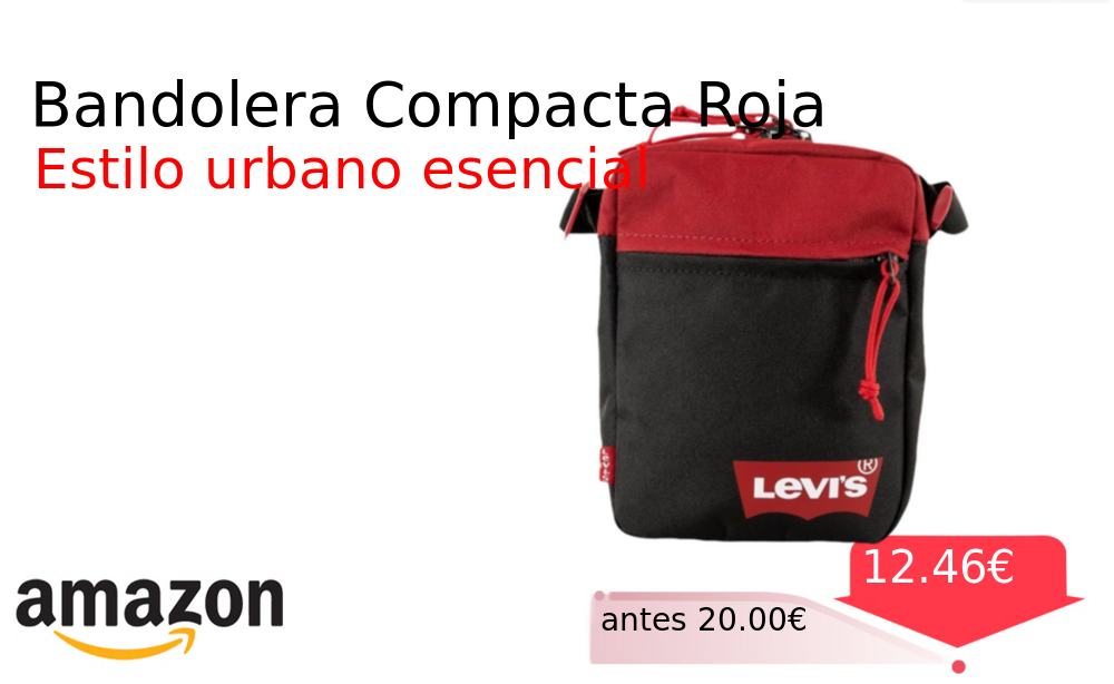 Más de un 30% 🚀 Bandolera Compacta Roja❗️🆕 #Amazon 🇪🇸 📛Precio Ya 12.46€❗️ (PVP: +20.00€) ✨Bolso bandolera compacto en rojo sólido con el icónico logo Batwing Diseño funcional y urbano ideal para el día a día Fabricación resistente. cholloya.com/LEVIS_CROSSBODY