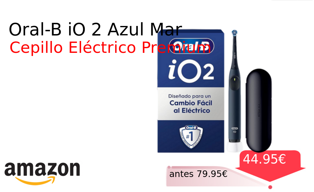 40% 📉 Vaya descuentazo‼‼ Oral-B iO 2 Azul Mar❗️🆕 #Amazon 🇪🇸 📛Precio Ya 44.95€❗️ (PVP: +79.95€) ✨Cepillo eléctrico con sensor de presión y tres modos de limpieza Incluye un estuche de viaje y un cabezal de recambio para una higiene. cholloya.com/ORALB_IO2_AZUL