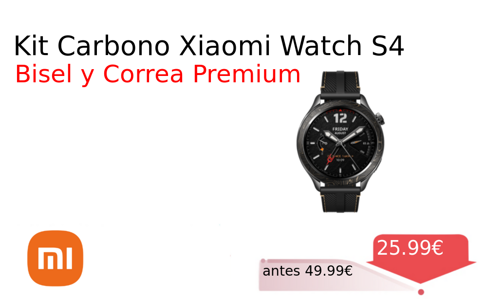 40% 📉 Vaya descuentazo‼‼ Kit Carbono Xiaomi Watch S4❗️🆕 #Mi 📛Precio Ya 25.99€❗️ (PVP: +49.99€) ✨Kit original Xiaomi con bisel y correa de fibra de carbono para tu reloj inteligente Personaliza el diseño con estilo elegante y resistencia garantizada. cholloya.com/XIAOMI_WATCH_S4